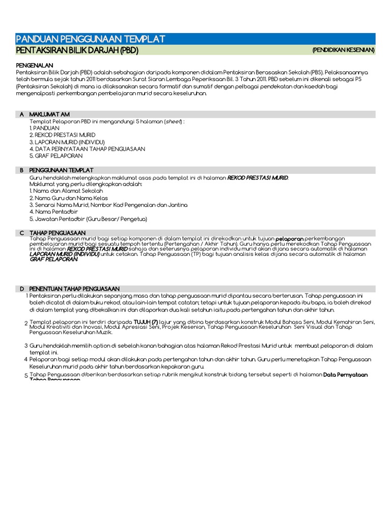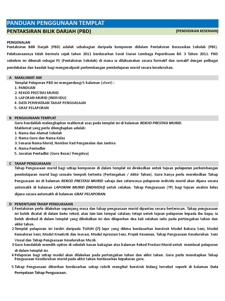 Pendidikan Kesenian Tahun 1 Template Pelaporan Pbd Pdf